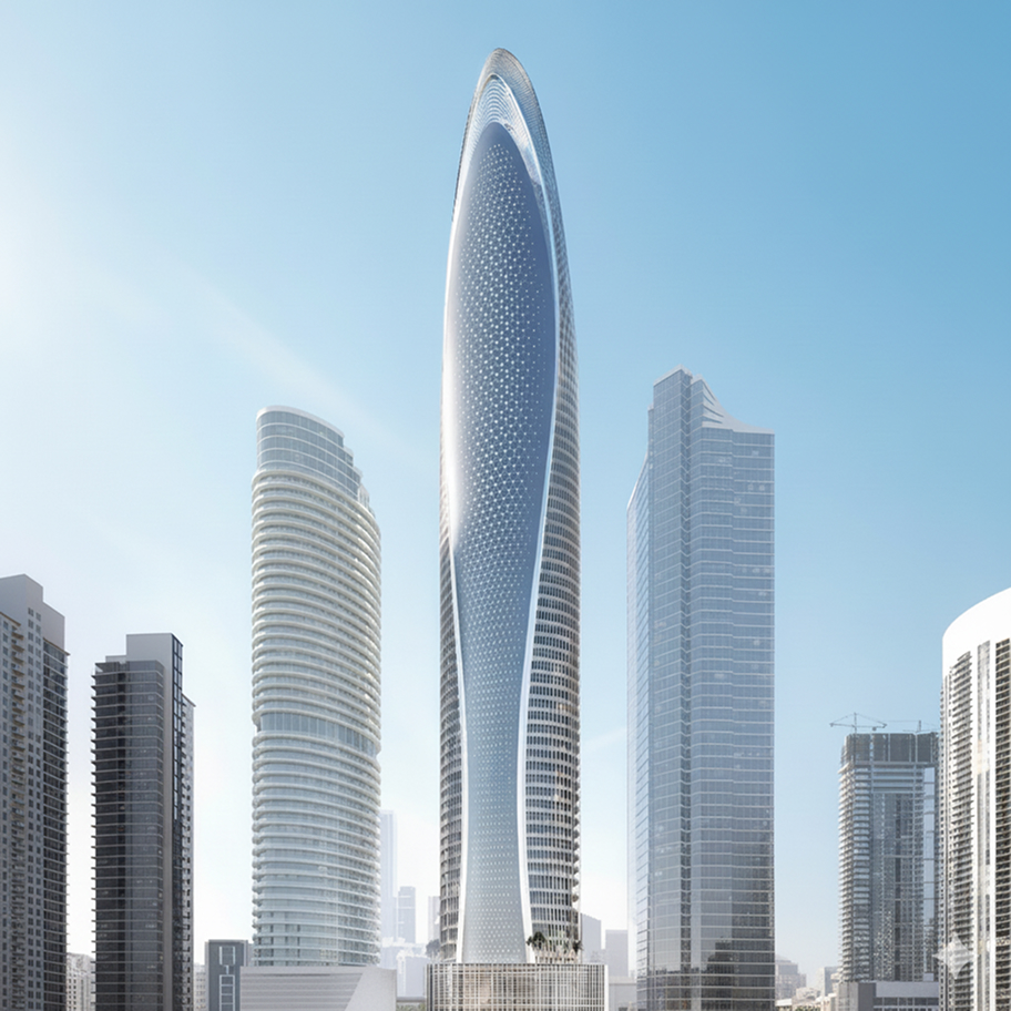 The Binghatti Mercedes-Benz Residences is a striking 65-storey tower located in Dubai’s Business Bay, created in collaboration with Mercedes-Benz as the world’s first branded residential development by the renowned luxury automaker.